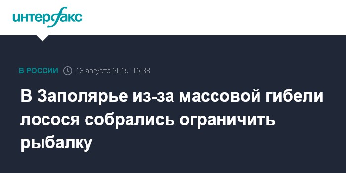 Москва. 13 августа. INTERFAX.RU - В Мурманской области на реках Кола и Тулома могут объявить временное ограничение любительской и спортивной лицензионной рыбалки в связи с массовой гибелью атлантического лосося.
