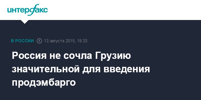 Москва. 13 августа. INTERFAX.RU - Российские власти решили не включать Грузию в расширенный список стран, в отношении которых применяется продовольственное эмбарго, из-за невысокого товарооборота и отсутствия активных отношений, заявили в пресс-службе правительства РФ.