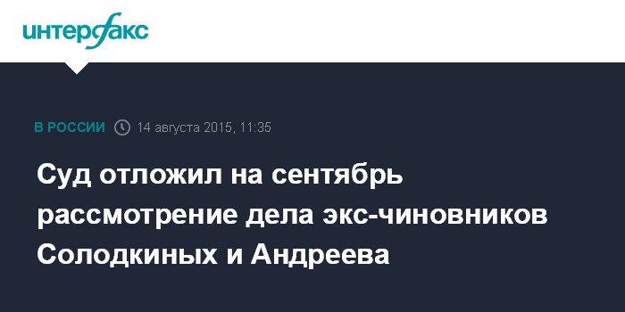 Суд отложил на сентябрь рассмотрение дела экс-чиновников Солодкиных и Андреева
