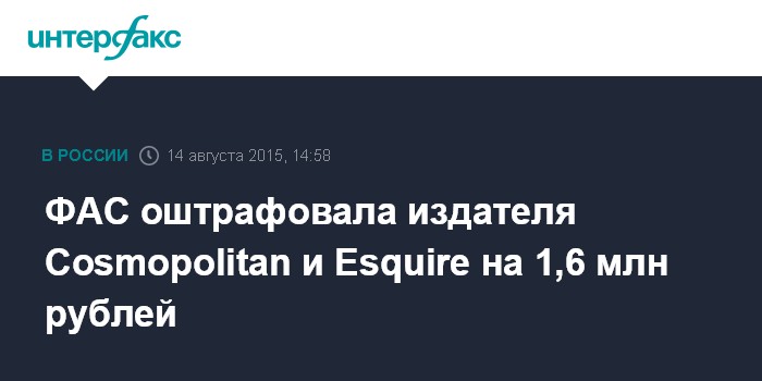 ФАС оштрафовала издателя Cosmopolitan и Esquire на 1,6 млн рублей