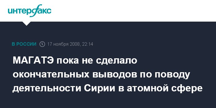МАГАТЭ пока не сделало окончательных выводов по поводу деятельности Сирии в атомной сфере