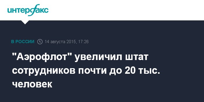 "Аэрофлот" увеличил штат сотрудников почти до 20 тыс. человек