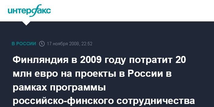 Финляндия в 2009 году потратит 20 млн евро на проекты в России в рамках программы российско-финского сотрудничества