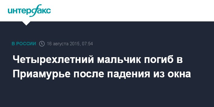 Четырехлетний мальчик погиб в Приамурье после падения из окна