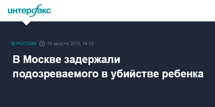 Москва. 16 августа. INTERFAX.RU - В Москве задержан мужчина, подозреваемый в убийстве двухлетнего ребенка, сообщили "Интерфаксу" в воскресенье в пресс-службе ГСУ СК России по Москве.