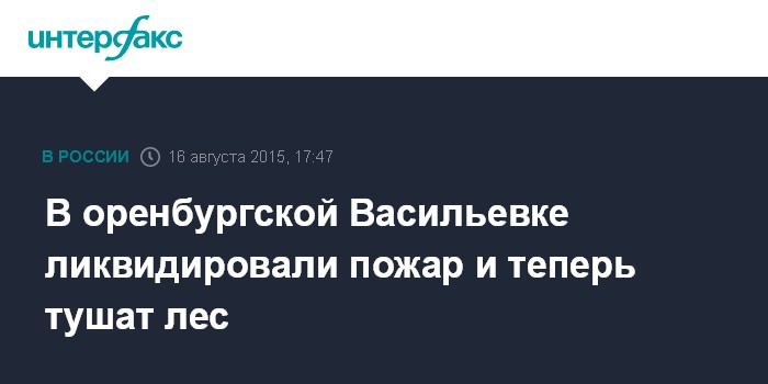 Москва. 16 августа. INTERFAX.RU - Пожарные ликвидировали огонь в деревне Васильевка в Оренбургской области, однако продолжается тушение огня в лесном массиве, сообщили "Интерфаксу" в пресс-службе Главного управления МЧС РФ по региону.