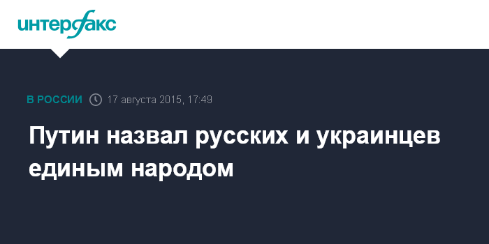Москва. 17 августа. INTERFAX.RU - Президент России Владимир Путин назвал русских и украинцев одним народом и выразил уверенность, что Украина справится со своими проблемами и выйдет из-под "внешнего управления"
