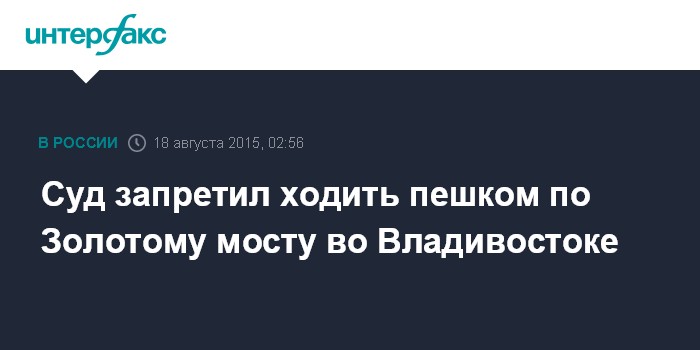 "По заявлению прокуратуры Приморского края суд признал недействующим приказ департамента дорожного хозяйства администрации Приморья, разрешающий пешеходное движение по мосту через бухту Золотой Рог", - сообщила агентству "Интерфакс" представитель прокуратуры Приморья Екатерина Ольховская.