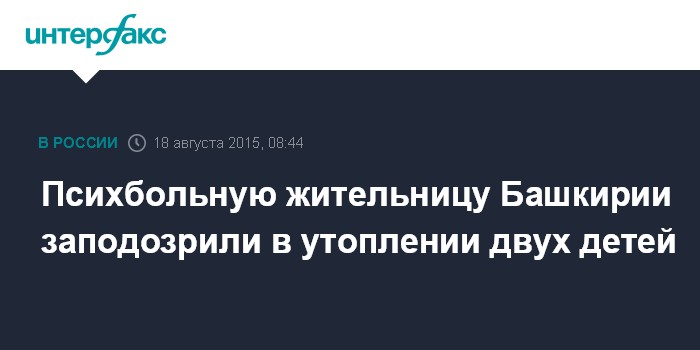 Москва. 18 августа. INTERFAX.RU - Жительницу Башкирии подозревают убийстве двух ее малолетних сыновей, сообщила пресс-служба СУ СКР по республике во вторник.