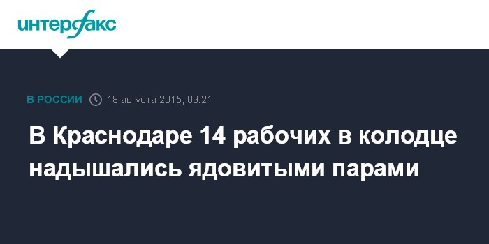 "Инцидент произошел минувшим вечером. Рабочие выполняли работы на стадионе в городе Краснодаре в дренажном колодце. В нем находилось 14 человек. Люди надышались, предположительно, парами угарного газа, в результате чего один рабочий скончался, еще 13 госпитализированы", - сказал источник.