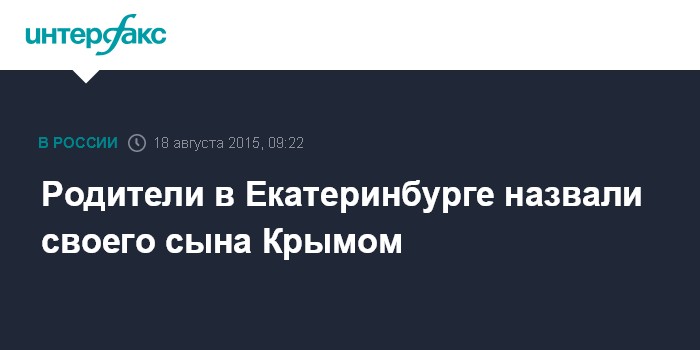 Москва. 18 августа. INTERFAX.RU - Мальчик по имени Крым появился на свет в городе Екатеринбурге, сообщила заместитель начальника управления ЗАГСа Свердловской области Наталья Курнаева.