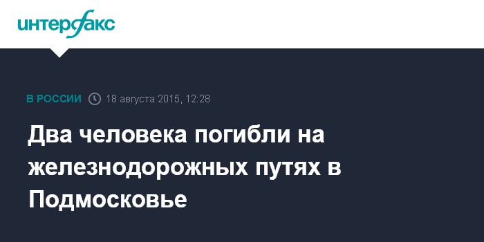 Москва. 18 августа. INTERFAX.RU - Два человека, мужчина и женщина, погибли на востоке Московской области, попав под электричку в момент, когда пытались попасть на платформу, перебегая железнодорожные пути. Об этом "Интерфаксу" сообщили во вторник в пресс-службе Московского межрегионального следственного управления на транспорте (ММСУТ).