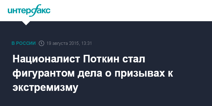 Москва. 19 августа. INTERFAX.RU - Новое дело возбуждено в отношении националиста Александра (Белова) Поткина, сообщили "Интерфаксу" в пресс-службе Следственного комитета.