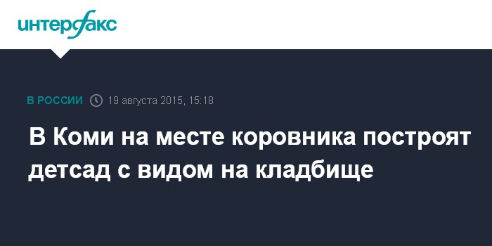Москва. 19 августа. INTERFAX.RU - Экологов Коми возмутило решение властей Усть-Цилемского района республики, разрешивших строительство на месте коровника детского сада с видом на кладбище.