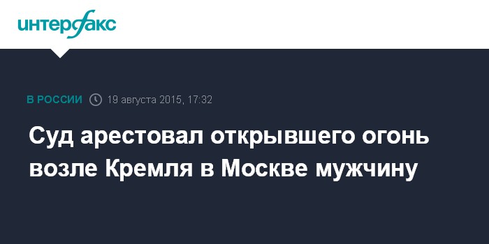 Москва. 19 августа. INTERFAX.RU - Мужчина, во вторник вечером выстреливший в воздух из обреза в Александровском саду, решением Тверского суда Москвы арестован на месяц.