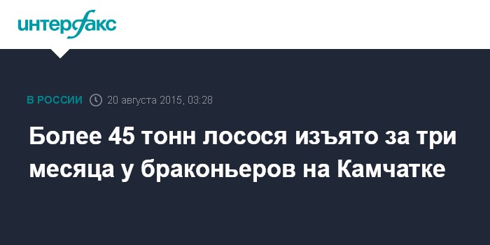 Москва. 20 августа. INTERFAX.RU - Порядка 160 уголовных дел по статье "барконьерство" возбуждены в Камчатском крае с начала проведения операции "Путина - 2015", сообщает в четверг УМВД России по региону.