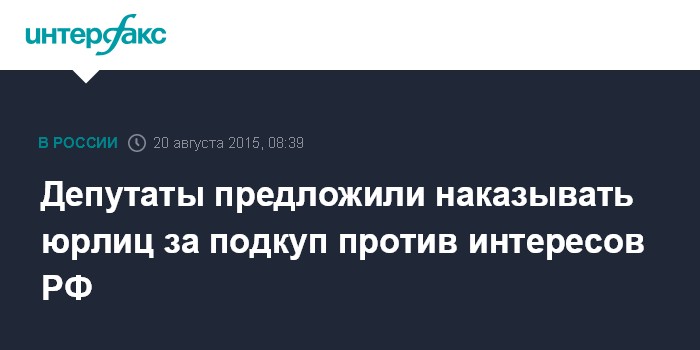 Москва. 20 августа. INTERFAX.RU – В Госдуму внесен законопроект об административной ответственности юридических лиц за подкуп, совершенный за пределами России, сообщает сайт правительства в четверг.