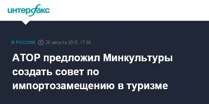 По данным исполнительного директора АТОР Майи Ломидзе, которые приводятся на сайте ассоциации, туроператоры готовы создавать новые маршруты по России и формировать спрос, однако без поддержки бизнес с этой задачей не справится. Поэтому АТОР предлагает создать под эгидой Минкультуры специальный совет, который занялся бы на государственном уровне поддержкой реальных участников рынка, способных обеспечить приход туристов в регионы.