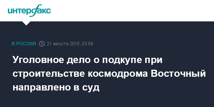 Уголовное дело о подкупе при строительстве космодрома Восточный направлено в суд