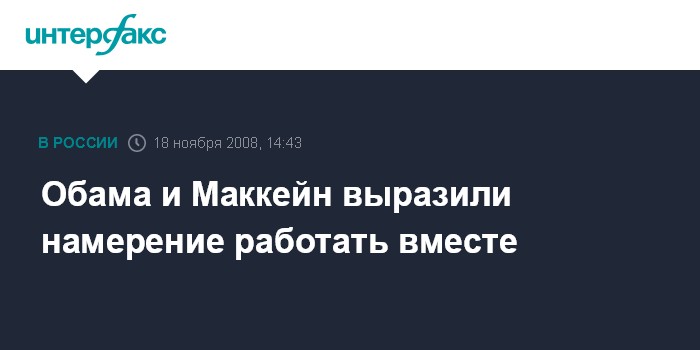 Москва. 18 ноября. INTERFAX.RU - Избранный президент США Барак Обама и его бывший соперник Джон Маккейн на встрече в понедельник пообещали американским гражданам сотрудничать, чтобы "открыть новую эру реформ" и восстановить доверие к правительству, сообщают американские СМИ.