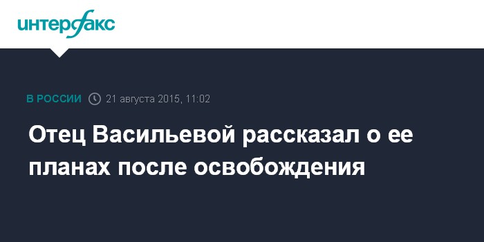 Он добавил, что дочь не говорила о возможном переезде из России после освобождения. "Нет, не выражала (подобного желания - ИФ)", - подчеркнул Васильев.