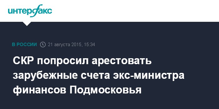 СКР попросил арестовать зарубежные счета экс-министра финансов Подмосковья