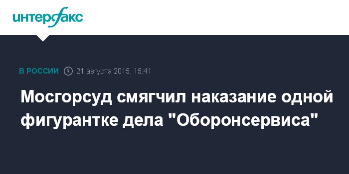 Москва. 21 августа. INTERFAX.RU - Мосгорсуд снизил наказание на два месяца Ирине Егоровой, ранее осужденной на четыре года лишения свободы по делу "Оборонсервиса", остальным фигурантам приговор оставлен без изменений.