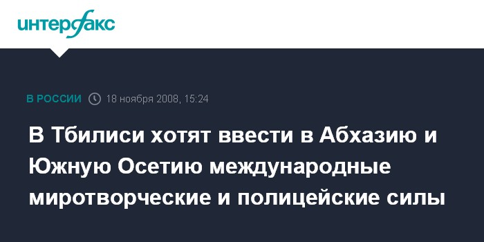 Москва. 18 ноября. INTERFAX.RU - На предстоящих 19 ноября консультациях в Женеве по вопросам стабильности и безопасности на Кавказе грузинская сторона намерена поставить вопрос о вводе в Абхазию и Южную Осетию международных миротворческих и полицейских сил.