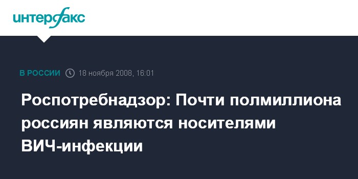 Москва. 18 ноября. INTERFAX.RU - В России на сегодняшний день зарегистрировано более 440 тыс. случаев заболевания СПИДом, сообщил представитель Федеральной службы по надзору в сфере защиты прав потребителей Александр Голеусов.