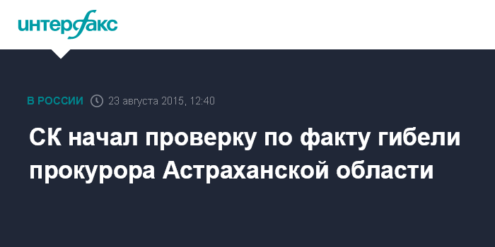 Москва. 23 августа. INTERFAX.RU - Следственное управление Следственного комитета России начало проверку по факту гибели прокурора Астраханской области Олега Дупака, сообщила "Интерфаксу" пресс-секретарь прокуратуры Астраханской области Юлия Свитина.