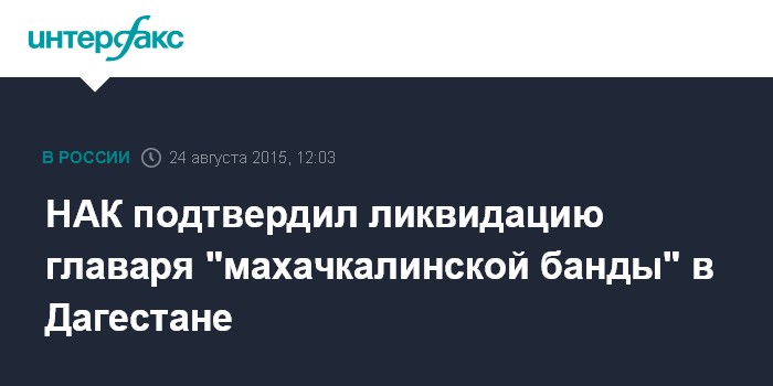 "В Дагестане нейтрализованы главарь и два бандита из так называемой "махачкалинской банды". Один из них предварительно опознан как Абдул Курбанов, 1985 года рождения, являвшийся главарем "ауховской" бандгруппы", а затем возглавивший "махачкалинскую" банду", - сказал представитель НАК.