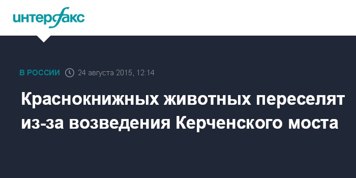 Москва. 24 августа. INTERFAX.RU - Животных, обитающих на территории будущего строительства Керченского моста, перевозят на новое место вдали от населенных пунктов и автотрасс, сообщили в понедельник в пресс-службе "СГМ-Мост".