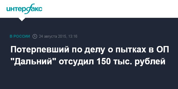 Москва. 24 августа. INTERFAX.RU - Вахитовский суд Казани взыскал с МВД России компенсацию в 150 тысяч рублей в пользу еще одного потерпевшего по делу о пытках в ОП "Дальний".