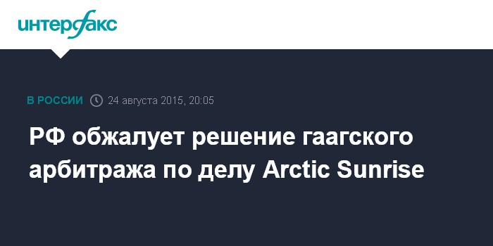 РФ обжалует решение гаагского арбитража по делу Arctic Sunrise