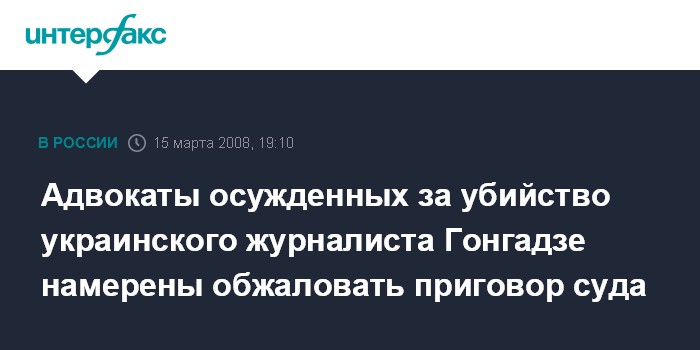 Киев. 15 марта. ИНТЕРФАКС-УКРАИНА - Адвокаты осужденных за убийство украинского журналиста Георгия Гонгадзе считают приговор слишком суровым и намерены его обжаловать.