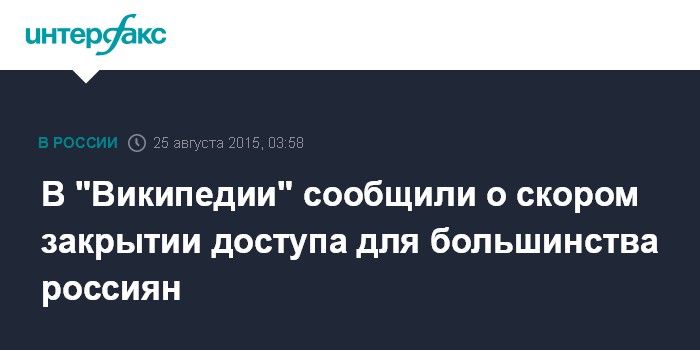 Москва. 25 августа. INTERFAX.RU - В "Википедии" считают, что к утру полная версия интернет-энциклопедии перестанет работать у большинства пользователей из России.