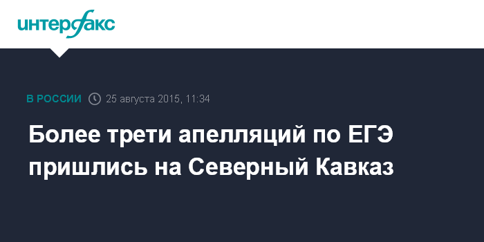 Москва. 25 августа. INTERFAX.RU - Свыше трети всех апелляций в России по ЕГЭ приходится на Северо-Кавказский федеральный округ (СКФО), заявил глава Рособрнадзора Сергей Кравцов.