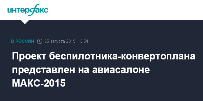 Москва. 25 августа. INTERFAX.RU - Холдинг "Вертолеты России" на авиасалоне МАКС-2015 в подмосковном Жуковском представил проект перспективного многоцелевого беспилотного воздушного судна, выполненного по схеме конвертоплана.