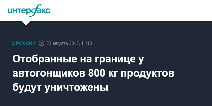 Москва. 26 августа. INTERFAX.RU - Россельхознадзор принял решение уничтожить почти 800 кг различных продуктов питания, которые были обнаружены в автомобиле, перевозившем из Нидерландов в Москву профессиональное оборудование для автогонок.