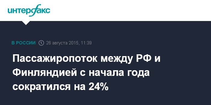 Москва. 26 августа. INTERFAX.RU - Поток пассажиров на сухопутных пунктах пропуска между Россией и Финляндией сократился на 24% за семь месяцев 2015 года, следует из информации, предоставленной финской пограничной службой.