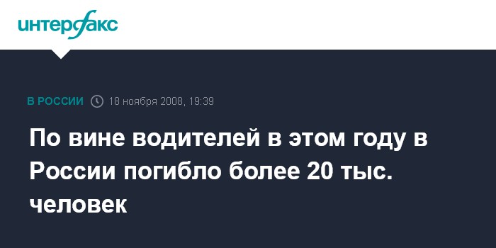 В нем отмечено, что за 10 месяцев 2008 г. в РФ из-за нарушений правил дорожного движения водителями транспортных средств произошло 151 тыс. 811 ДТП, в которых 20 тыс. 522 человека погибли и 197 тыс. 334 были травмированы.