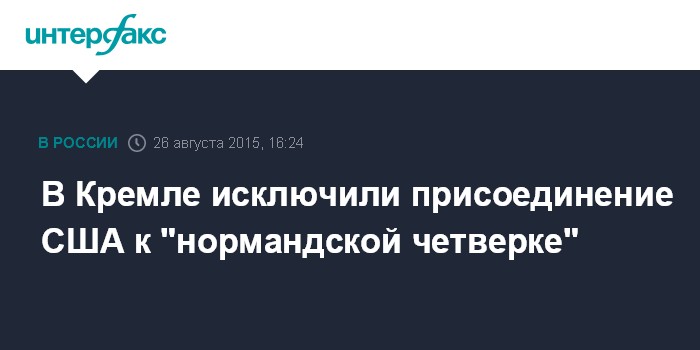 Москва. 26 августа. INTERFAX.RU - В Кремле исключают возможность проведения саммита "нормандской четверки" с подключением пятой стороны, в частности, президента США.