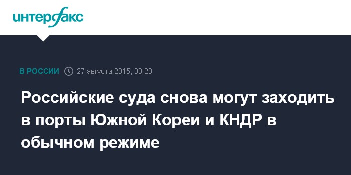 Москва. 27 августа. INTERFAX.RU - Приморское территориальное управление Росрыболовства в связи с нормализацией обстановки на Корейском полуострове отменило ранее направленные судовладельцам рекомендации об ограничении заходов в порты Южной Кореи и КНДР.