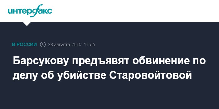 Москва. 28 августа. INTERFAX.RU - Предпринимателю Владимиру Барсукову (Кумарину) в ближайшее время предъявят обвинение по делу об убийстве Галины Старовойтовой, за организацию которого в пятницу на 17 лет осудили экс-депутата Госдумы Михаила Глущенко, сообщил "Интерфаксу" адвокат Сергей Афанасьев в пятницу.