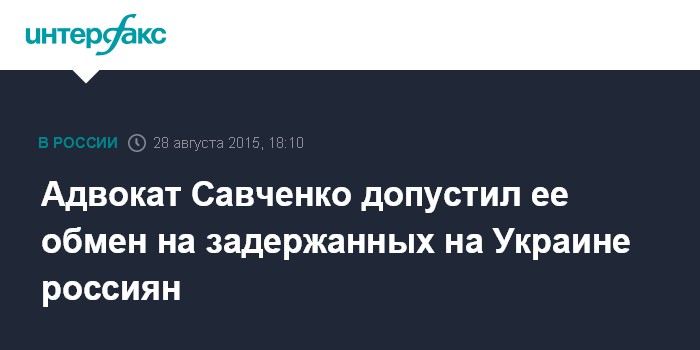 Москва. 28 августа. INTERFAX.RU - Защита украинской летчицы Надежды Савченко, обвиняемой по делу об убийстве российских журналистов, считает, что ее обмен на задержанных на Украине граждан РФ Евгения Ерофеева и Александра Александрова возможен только после вынесения приговора.