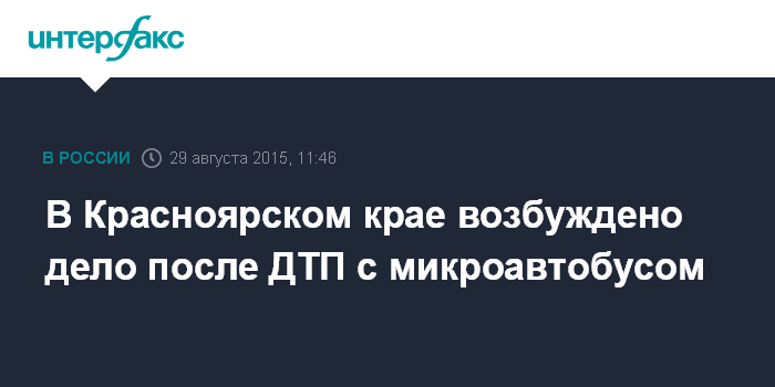 Москва. 29 августа. INTERFAX.RU - Следователи полиции возбудили уголовное дело по факту аварии микроавтобуса с людьми под Красноярском, сообщается на сайте ГУ МВД по региону.