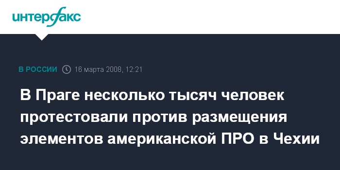 Манифестанты выступили против планов размещения в Чехии радиолокационной станции ПРО США. Более 2 тысяч человек участвовали в шествии от Пражского Града до здания американского посольства с лозунгами: "Нет военным базам!", "Мы не овцы, хотим участвовать в принятии решений"!