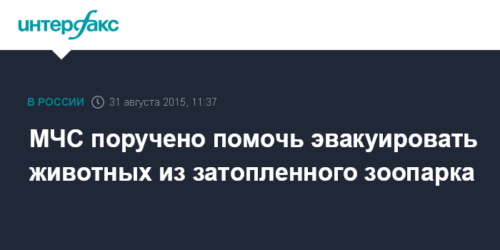 Москва. 31 августа. INTERFAX.RU - Вице-премьер - полпред президента РФ в Дальневосточном федеральном округе Юрий Трутнев дал поручение МЧС помочь эвакуировать животных из затопленного частного зоопарка.