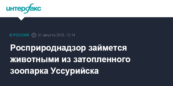Москва. 31 августа. INTERFAX.RU - Сотрудники Росприроднадзора и дальневосточных заповедников по поручению Минприроды РФ отправятся в Уссурийск спасать животных городского зоопарка от затопления в результате паводка, сообщили в понедельник в пресс-службе министерства.