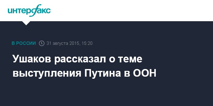 Ушаков рассказал о теме выступления Путина в ООН